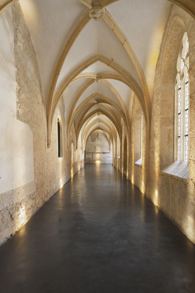 Étonnamment, ceci est le mélange parfait d’un monastère vieux de 800 ans et d’un centre de performance du 21ème siècle. Ce lieu historique a été abandonné par les moines il y a longtemps, et a été transformé successivement en un hôpital, un musée … Le changement d’aujourd’hui est parfaitement réalisé, et très beau. L’utilisation de la couleur noire pour présenter toute la modernité de l’approche est une trouvaille pertinente. Suivez donc le sol noir pour découvrir la salle de théâtre magnifique dans le diaporama.
